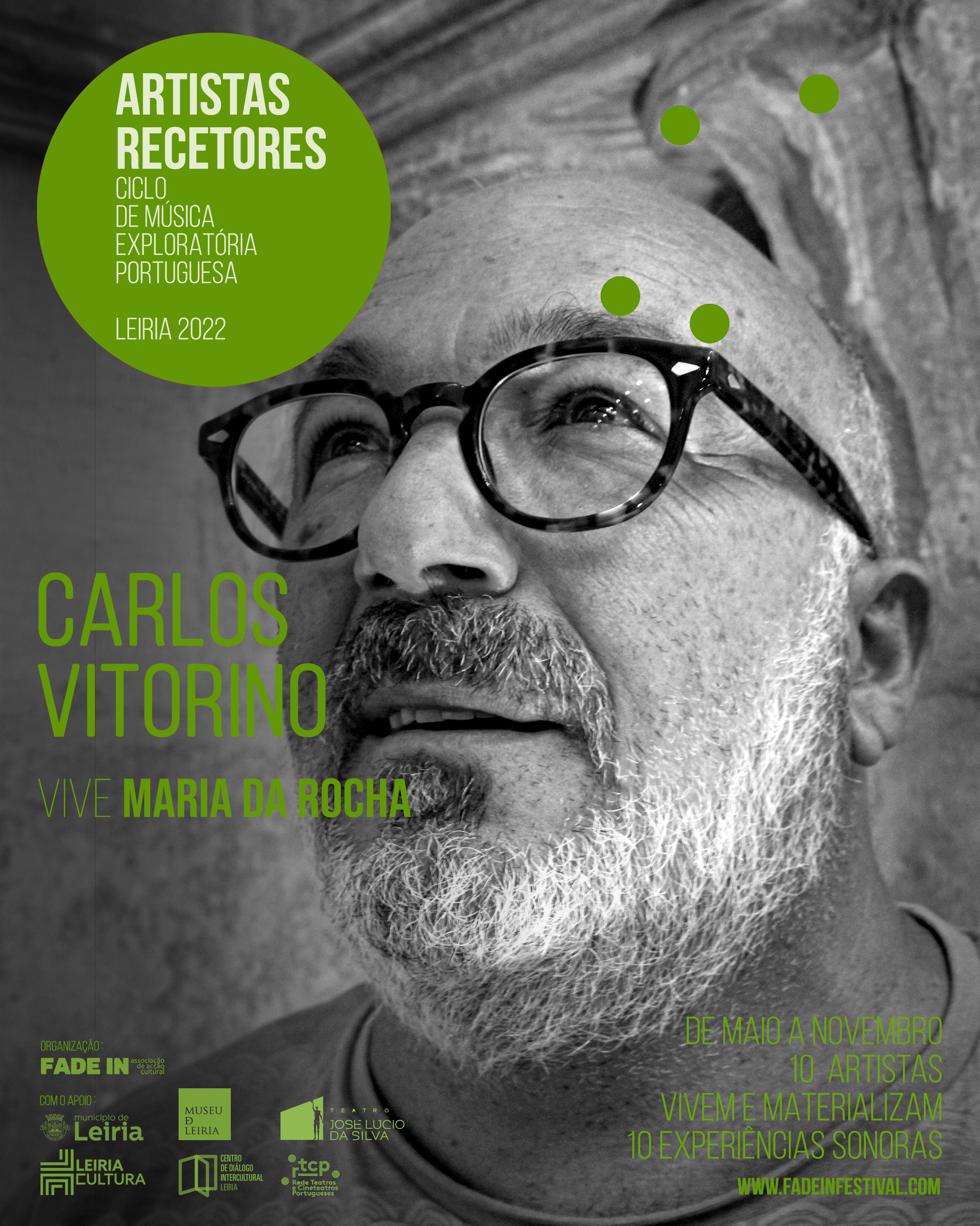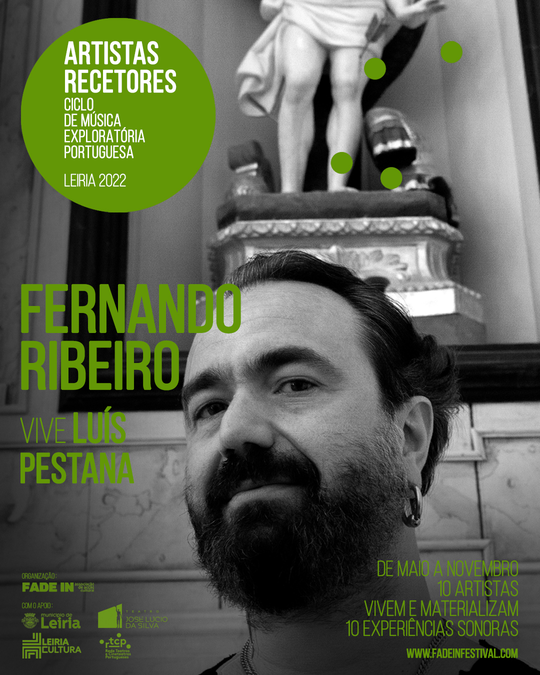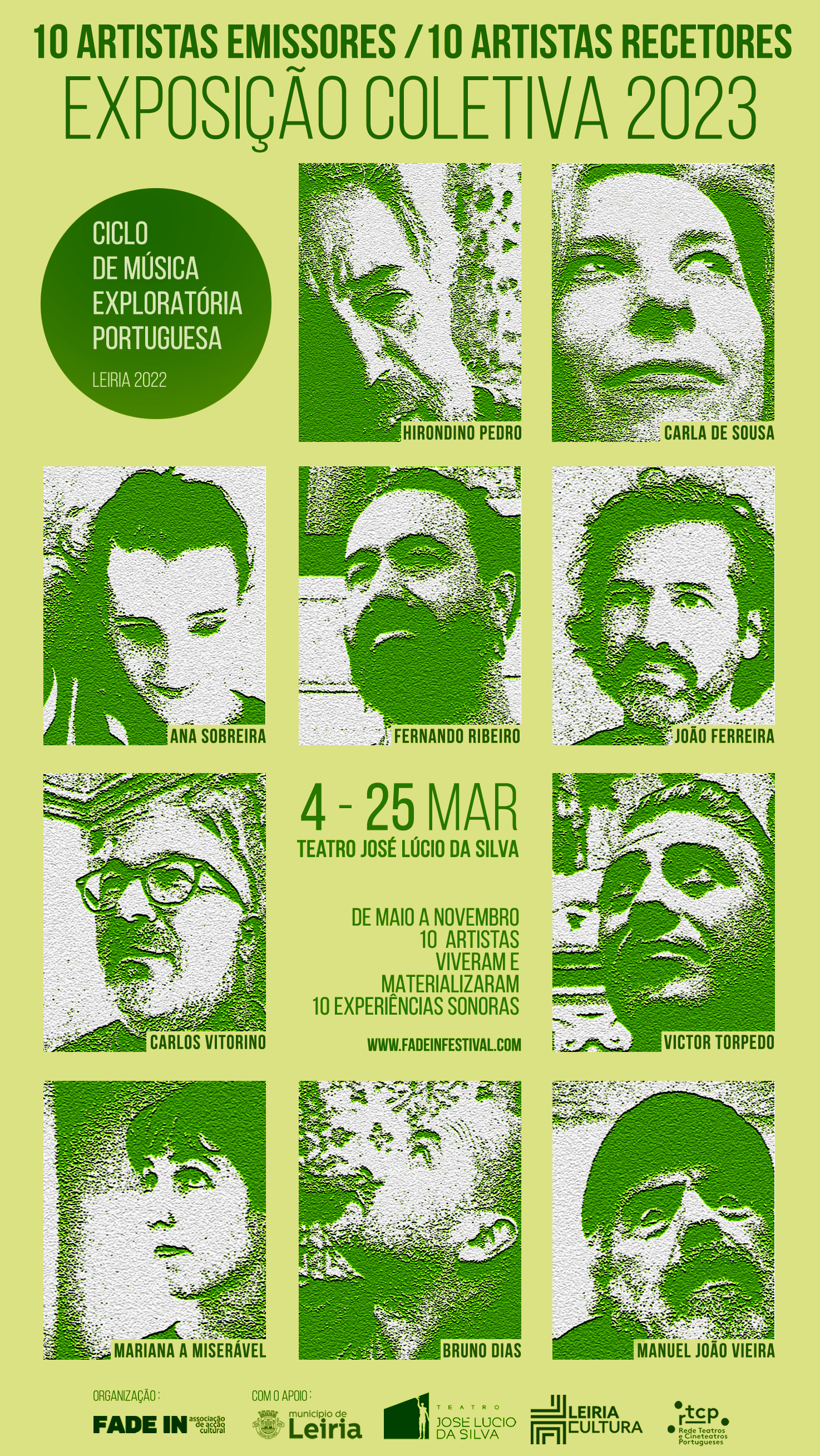 A Fade In – Associação de Acção Cultural, levou a cabo, entre maio e novembro de 2022, a segunda edição do CICLO DE MÚSICA EXPLORATÓRIA PORTUGUESA, evento que aconteceu em vários espaços culturais da cidade do Lis [Igreja da Pena, Igreja de São Pedro, Igreja da Misericórdia (CDIL – Centro de Diálogo Intercultural de Leiria) e Museu de Leiria] e que contou com o apoio do Município de Leiria, do Teatro José Lúcio da Silva e do RTCP – Rede Teatros e Cineteatros Portugueses.