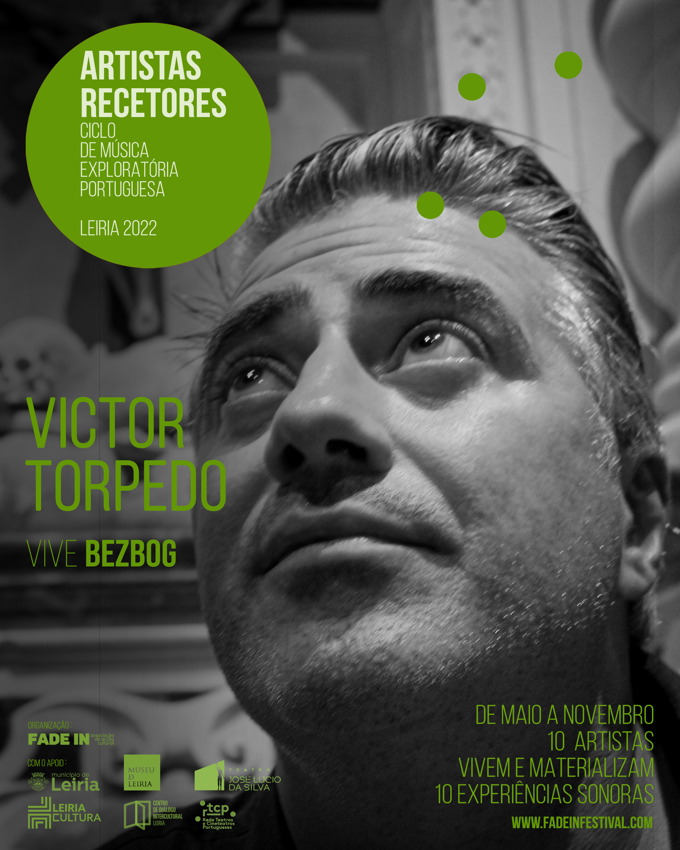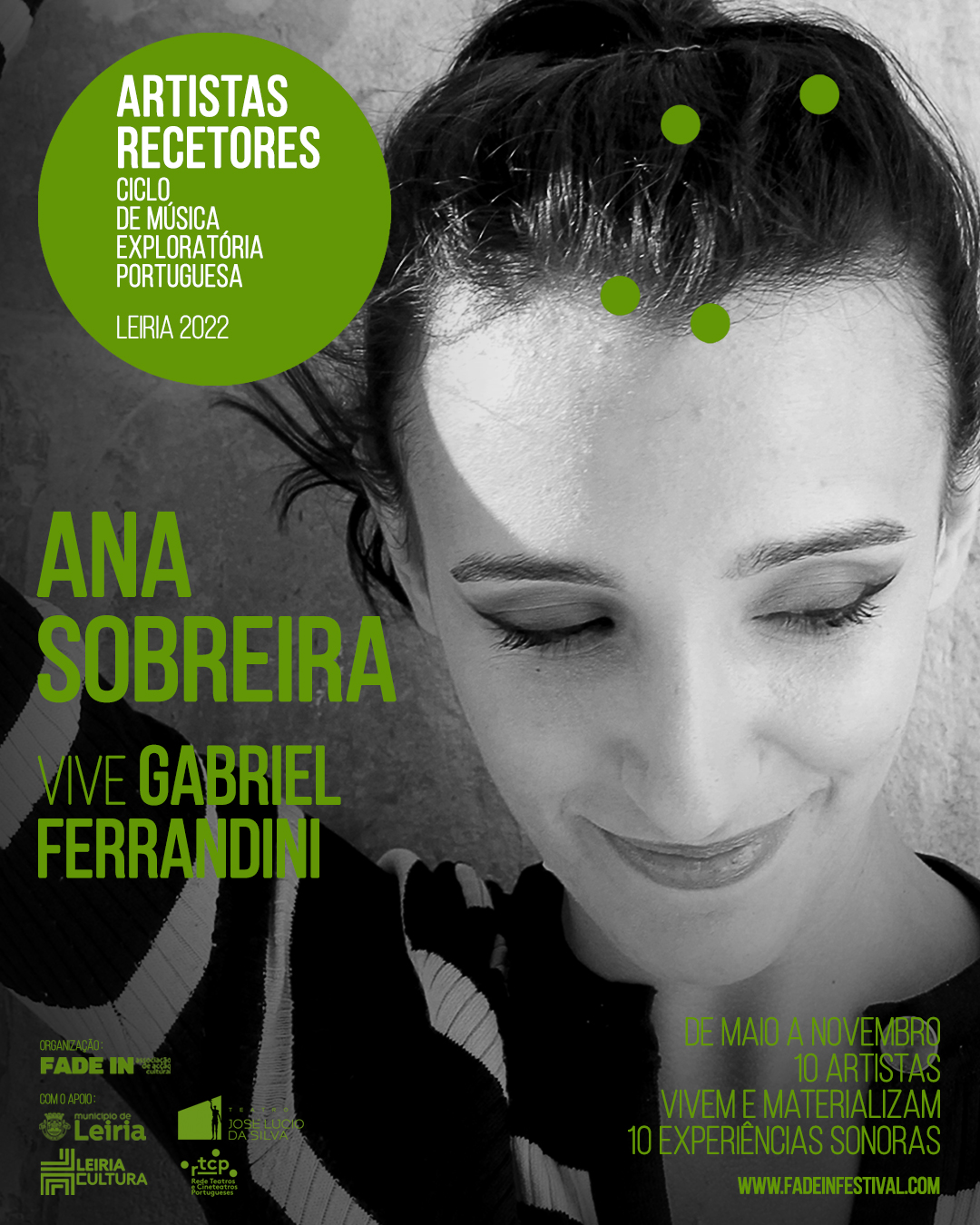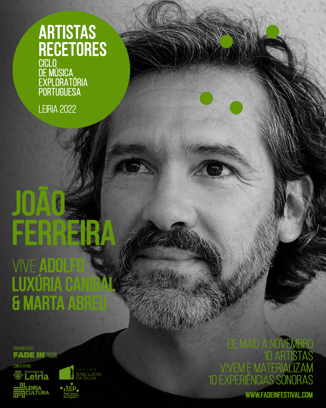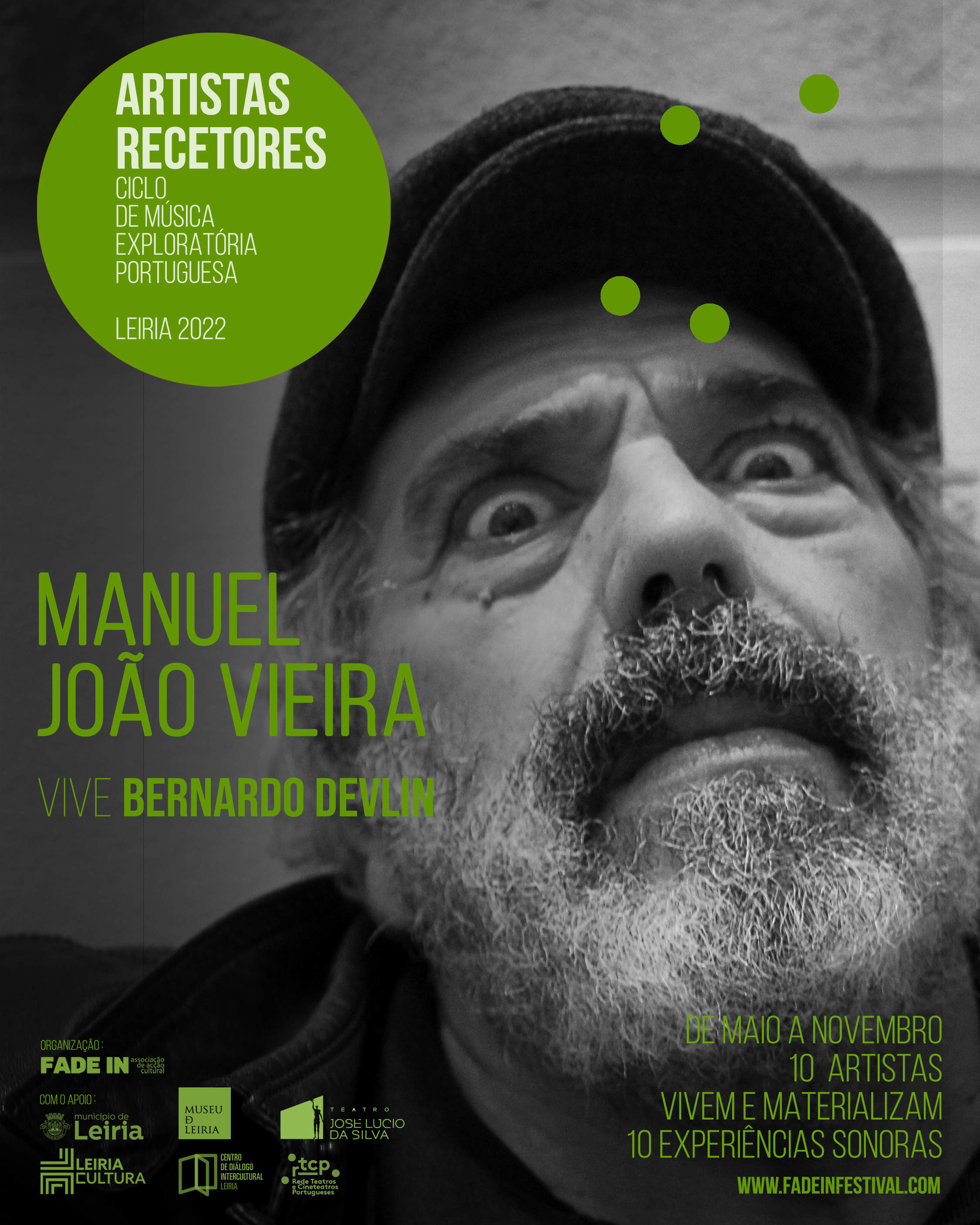 A Fade In – Associação de Acção Cultural, levou a cabo, entre maio e novembro de 2022, a segunda edição do CICLO DE MÚSICA EXPLORATÓRIA PORTUGUESA, evento que aconteceu em vários espaços culturais da cidade do Lis [Igreja da Pena, Igreja de São Pedro, Igreja da Misericórdia (CDIL – Centro de Diálogo Intercultural de Leiria) e Museu de Leiria] e que contou com o apoio do Município de Leiria, do Teatro José Lúcio da Silva e do RTCP – Rede Teatros e Cineteatros Portugueses.