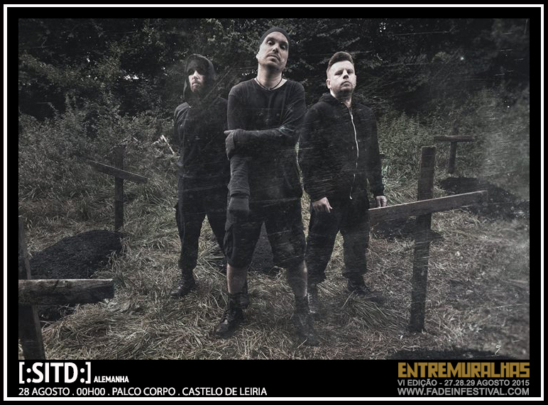 Os germânicos [:SITD:] são uma das mais bem sucedidas e aclamadas bandas electro industriais da Europa. A sua sonoridade distingue-se pelas melodias e pelas nuances contemplativas das ambiencias que por vezes as acompanham. Os ritmos, tanto podem ser em mid-tempo como em velocidade acelerada, tonificados, normalmente, por sequenciadores circulares que nos fazem bater o pé e dançar. As vocalizações tanto se podem apresentar limpas como saturadas em efeitos, tendo sempre um papel fundamental na identidade do grupo. Os [:SITD:] – iniciais de Shadows In The Dark (que é uma uma expressão metafórica relativa à música e ao conteúdo lírico da própria banda) – formaram-se em 1996 e são constituídos por Carsten Jacek (voz), Thomas Lesczenski (programação e voz secundária) e Francesco D’Angelo (teclas). Para além do seu numeroso espólio editorial, onde pontificam discos (“Stronghold” em 2003, “ICON:KORU” em 2011, e “Dunkelziffer” em 2014) que atingiram o primeiro lugar das tabelas alternativas alemãs (DAC – Deutsch Alternative Charts), os [:SITD:] são também conhecidos pela quantidade de remixes que já fizeram e de que são alvo. Nesse particular encontramos colaborações com Suicide Commando, Rotersand, Oomph!, Eisbrecher, Painbastard, Kant Kino, Agonoize, Project Pitchfork, VNV Nation ou com os portugueses ESC (Eden Synthetic Corps – banda sediada precisamente em Leiria!). Rezam as crónicas que os seus concertos ao vivo são de grande impacto, não sendo por isso estranho que tenham já actuado várias vezes em festivais tão importantes como o M’era Luna, Zillo, Wave-Gotik Treffen, Summer Darkness ou o Amphi Festival. Certo certo é que também vão inscrever o seu nome no ENTREMURALHAS 2015 onde assumiram o compromisso de colocar todos os presentes a dançar, como aliás, manda a tradição do Palco Corpo.