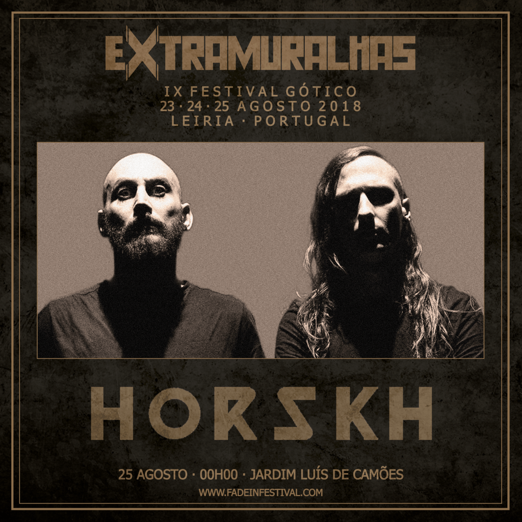 Foi a comitiva do projecto gaulês Perturbator que, no ano passado no Entremuralhas 2017, nos deu a conhecer os seus compatriotas HORSKH. Quando vimos os vídeos das suas avassaladoras prestações ao vivo ficámos logo com a intenção de os fazer estrear no nosso país. Oriundos de Besançon os HORSKH são uma dupla constituída por Bastien (programações, teclas, guitarra e voz) e por Briou (bateria). A sua música, electro-industrial com nuances de EBM, é uma poderosa máquina tecnológica, totalmente vocacionada para incendiar plateias. A reforçar a estratégia sonora destes autênticos “fire-starters” está uma postura de contágio accionada através dos energéticos comportamentos que ambos os músicos assumem em palco. Sons poderosos, sequências electrónicas abrasivas, batidas incisivas, e uma voz agressiva e com atitude. Imaginem um universo povoado de referências a Skinny Puppy, Gesaffestein, Prodigy, Huoratron ou Chrysalide onde, para além da forte presença electrónica emerge uma atitude rock e uma impactante bateria ao vivo. Bastien (que também é dos Jack And The Bearded Fishermen – uma banda de noise-rock) e Briou (que também é dos Black Code – uma banda de crust/death-metal) vêm ao EXTRAMURALHAS celebrar a diferença e mostrar que ainda há um tipo de electro-industrial que não é anacrónico e nem soa a mofo. Preparados para o mosh?