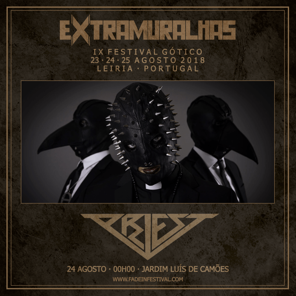 Os suecos PRIEST são um trio formado por Mercury, Salt e Sulphur, que “teimam” em manter as suas identidades secretas. Sabe-se, no entanto, que um deles (o membro fundador) foi durante sete anos conhecido como Alpha Ghoul, guitarrista das super-estrelas nórdicas Ghost, banda que também é conhecida por manter o anonimato dos seus membros, a quem chama de “nameless ghouls”. No entanto, também se especula fortemente que os outros dois músicos possam, igualmente, ser dos Ghost. Enfim, mistérios à parte, os PRIEST estão no EXTRAMURALHAS para mostrar ao vivo o seu incrível álbum de estreia. Um disco repleto de referências da música electrónica dos anos oitenta, com Depeche Mode, Yazoo e Human League à cabeça. As canções, onde se sente sempre uma certa tensão sexual, são feitas de estilizados arranjos e dirigidas por uma voz que nos remete para Alyson Moyet ou Martin Gore. Os PRIEST são autores de um “dark-synthpop” sofisticado, sendo, indiscutivelmente, donos do melhor álbum que ouvimos, nesta estética, nos últimos anos. “New Flesh”, assim se chama o disco, agarra-nos completamente do princípio ao fim. “Populist”, “The Pit”, “Vírus”, “Nightmare Hotel” ou “Call My Name” vão colocar Leiria a dançar. Indiscutivelmente!