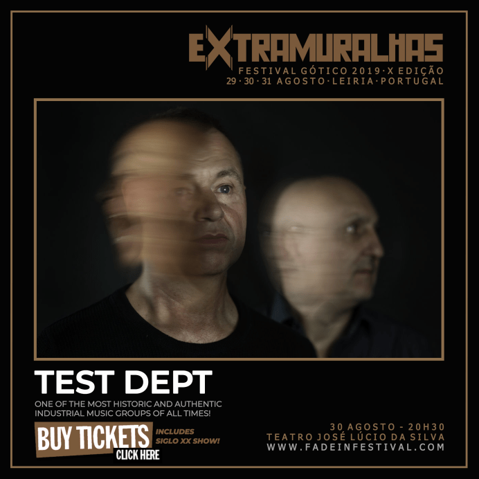 É com incomensurável orgulho que a FADE IN acrescenta mais um grupo histórico e de relevância mundial no seu (já vastíssimo) currículo. Os britânicos TEST DEPT são, a par de nomes como Throbbing Gristle, Laibach, Cabaret Voltaire ou Einsturzende Neubauten, uma das bandas percursoras da chamada Música Industrial (no seu estado mais puro e seminal). Formados em Londres, em 1981, a banda causou o primeiro impacto ao reutilizar desperdícios industrias, transformando-os de modo a servir os seus propósitos “musicais”. Mas foi em 1984 que os TEST DEPT ganharam mais protagonismo mediático quando colaboraram com o “South Wales Striking Miners Choir” no apoio às greves dos mineiros. As suas performances ao vivo eram memoráveis devido à energia que impunham e às complexas, notáveis e poderosas percussões que usavam na sua arte. Os TEST DEPT, que assinavam pela Some Bizzare (colegas de editora, portanto, de nomes como Depeche Mode, Soft Cell, The The, Foetus ou Swans) eram um colectivo com fortíssimas convicções políticas optando sempre por estar ao lado das lutas do proletariado. Nos anos 90 com o abrandar das reivindicações de classes, a banda tornou-se menos reivindicativa e passou a incluir nos seus temas elementos da música techno. Em 1997 os TEST DEPT acabaram por se separar mas os seus membros continuaram activos em diversas áreas da arte e da cultura. Em 2014 a banda voltou ao activo para alguns concertos. As reações dos fãs foram tão entusiastas que os TEST DEPT resolveram ressuscitar em toda a escala, como se fosse uma re-fundação, um regresso às origens, com tudo a que temos direito: música industrial (como no princípio, claro!) no álbum que viu a luz do dia em 2019. O disco chama-se “Disturbance” e saiu para o mercado 22 anos depois do último, agora através da One Little Indian, reputada editora que também vai reeditar grande parte da vasta discografia da banda. O concerto no EXTRAMURALHAS 2019, mostrar-nos-á uns TEST DEPT completamente revitalizados, com uma performance poderosa que evocará o passado (sim, haverá desperdícios industriais em palco!) mas que não deixará de lado a contemporaneidade dos nossos tempos. Ah! E o lado político voltou a estar (muito) presente nas suas composições. Este é, sem dúvida alguma, um regresso que se saúda e um espectáculo, a todos os níveis, imperdível!