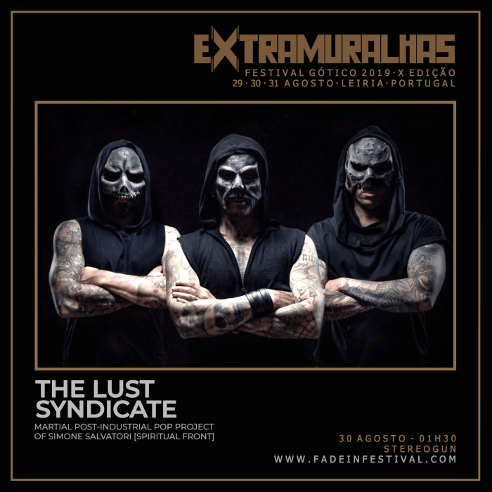 Quando nos referimos a Simone Salvatori há sempre três adjectivos que nos vêm automaticamente à cabeça: Inteligência, irreverência e classe. Este genial pensador e comunicador apresenta-se pela terceira vez ao vivo no Festival Gótico de Leiria (em 2013 actuou com os seus Spiritual Front e, em 2017, em nome próprio). Desta vez, o autor de algumas das mais inventivas definições musicais de que há memória (“Anti Capitalism Industrial Pop” ou “Nihilist Suicide Pop”) apresenta-se, em exclusivo no nosso país, com a sua mais recente “invenção” musical, THE LUST SYNDICATE. O projecto, que ao vivo se apresenta como um trio, traz ao EXTRAMURALHAS 2019 os temas do álbum “Capitalism is Cannibalism”, um disco que defende que o capitalismo é uma guerra que faz com que a sociedade ocidental se esteja a devorar a ela própria. Por isso os THE LUST SYNDICATE propõem-se a desconstruir conceitos e lançar anátemas que podem dizimar e/ou infectar o que muitos têm acreditado até aqui. Para o fazer, para além da astúcia das palavras, os THE LUST SYNDICATE usam ritmos marciais e sons industriais, numa conjugação de estrutura paradoxalmente pop. Não acreditam? É ver para crer!