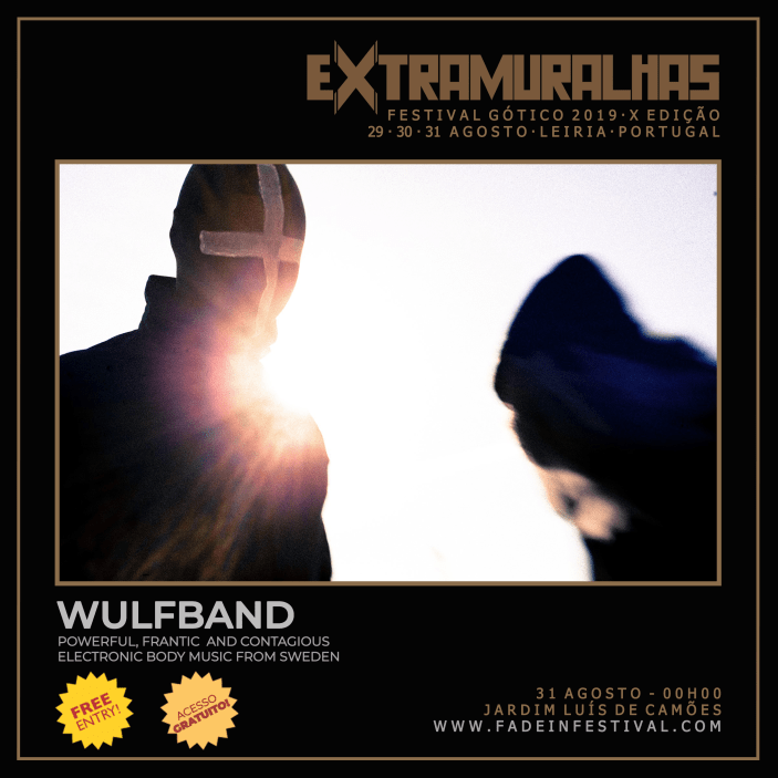 A FADE IN andava de olhos (e ouvidos!) postos nestes suecos há um par de anos e concretiza agora aquilo que vinha a materializar em desejo: estrear em Portugal aquela que é, no seu entender, a melhor banda de EBM (Electronic Body Music) da actualidade. Ninguém sabe ao certo quem são os WULFBAND. Sabe-se, no entanto, que o seu vocalista é um germânico radicado na Suécia, daí a banda exprimir-se em alemão. Os seus dois elementos nucleares (baterista e vocalista) têm mantido anonimato e cultivam, como é apanágio nestas circunstâncias, um secretismo em relação às suas verdadeiras identidades. Ao vivo, a banda apresenta-se de caras tapadas, o que só vem adensar o mistério. Conhecidos apenas como 7 e 9 (ou Sieben und Neun) os WULFBAND (que em palco podem ter quatro elementos) redesenharam autenticamente o mapa da EBM, afastando-se do numeroso grupo de bandas do género que replica até à exaustão os DAF ou os Nitzer Ebb (estes, estrearam-se ao vivo em Portugal num concerto exclusivo no ENTREMURALHAS 2011). Não que a banda não assuma influências desses dois colossos, mas é legítimo que não queira ser apenas um mero clone. Para isso os WULFBAND aceleraram a sua música, aumentaram a ferocidade, combinando elementos punk com ritmos e sequências electrónicas ainda mais incisivas, introduzindo uma energia explosiva, tão devastadora quanto atractiva. Os WULFBAND criaram um som que é hoje uma imagem de marca reconhecida por fãs e pela crítica. Experiência-los ao vivo é o mesmo que levar com um camartelo na face sem nos apercebermos do que aconteceu e, claro, sem dor. Metáforas à parte, isto é mesmo coisa coisa para não se perder ao vivo! Ainda por cima com acesso gratuito! Aguentem-se!