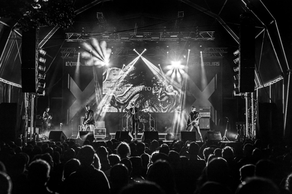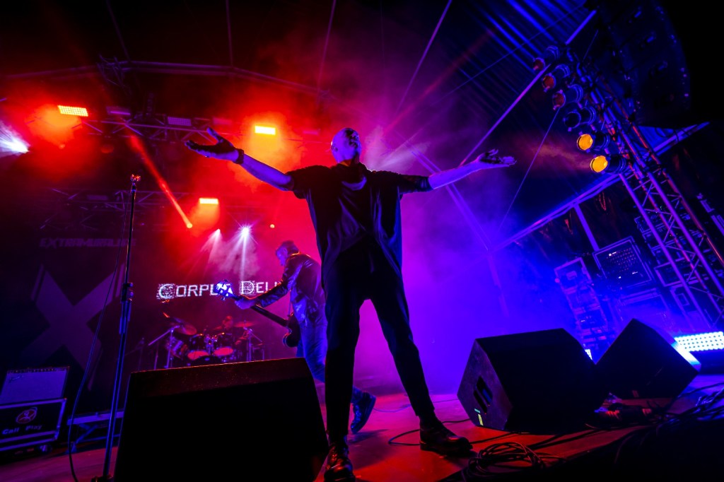 DREAMS COME TRUE. A FEW YEARS AGO, WE WOULDN’T HAVE BELIEVED IT WOULD BE POSSIBLE TO BRING ONE OF OUR ALL-TIME FAVORITE BANDS TO OUR FESTIVAL. THE MYTHICAL FRENCH GROUP CORPUS DELICTI EXISTED IN THE ’90S, THEN TOOK AN INDEFINITE HIATUS. FORTUNATELY, AFTER DECADES OF ABSENCE, THEY DECIDED TO RETURN TO THE STAGE TO CELEBRATE THE 30TH ANNIVERSARY OF THEIR CULT ALBUM “TWILIGHT.” IT WAS A GOLDEN OPPORTUNITY TO SCHEDULE THEM FOR EXTRAMURALHAS 2023. TO “HONOR” OUR HUMBLE INVITATION, THEY GIFTED US WITH AN ANTHOLOGICAL PERFORMANCE, DELIGHTING THE HUNDREDS OF FANS WHO KNEW AND SANG EVERY LYRIC. AMONG THE ENTHUSIASTIC CROWD THAT FILLED JARDIM LUÍS DE CAMÕES WERE CONNOISSEURS FROM ALL OVER EUROPE. INDEED, CORPUS DELICTI PLAYED A SET OF EXTRAORDINARY SONGS, SOME OF WHICH ARE TRUE ANTHEMS IN THE WORLDWIDE GOTHIC ROCK SCENE. HOW LUCKY WE WERE! PHOTOGRAPHER GIL ÁLVARO DE LEMOS TOOK THESE FANTASTIC IMAGES.