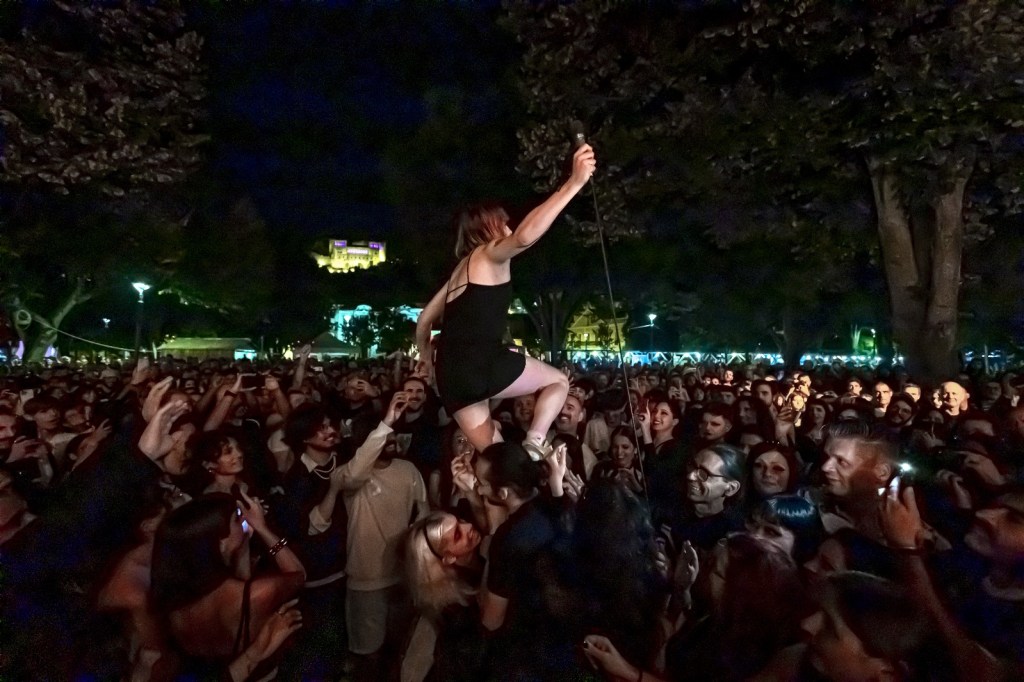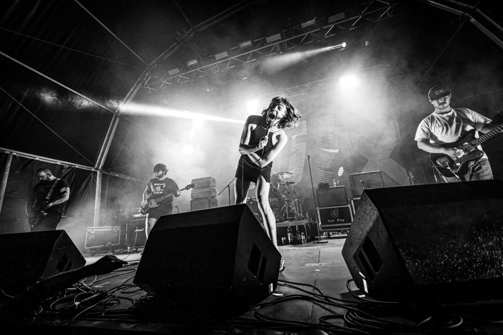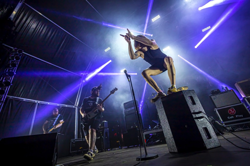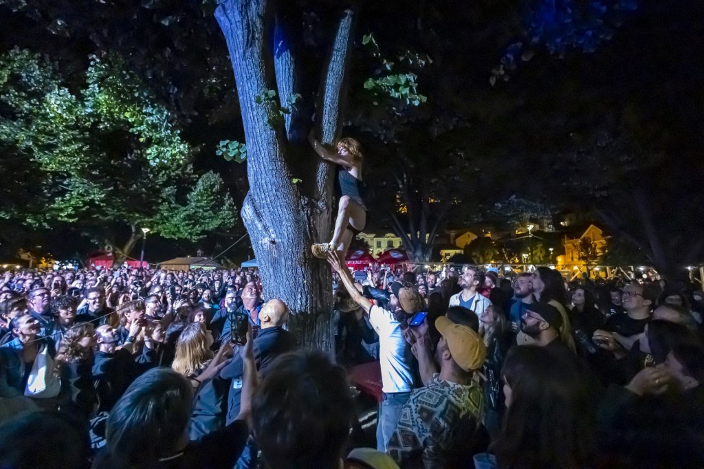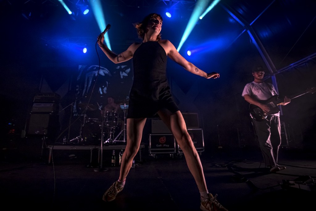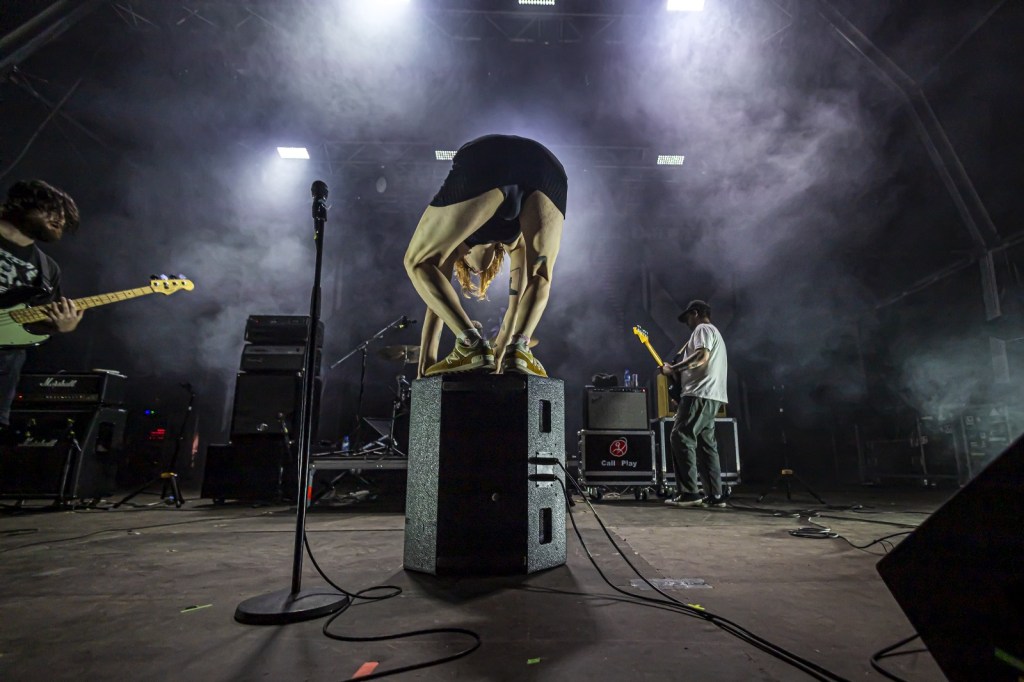 DITZ, FROM BRIGHTON, ENGLAND, AMAZED EXTRAMURALHAS 2023 WITH A BARRAGE OF DECIBELS, CONTROLLED FEEDBACK DISCHARGES, IN A FOREFRONT WALL OF PURE NOISE ROCK WITH A GLOOMY CLOUD OF MODERN POST-PUNK. AN ASTONISHING LIVE PERFORMANCE WITH AN ACROBATIC VOCALIST WHO CAPTIVATED THE PACKED CROWD THAT FILLED THE GARDEN WHERE THE SHOW TOOK PLACE. THESE PHOTOS BY GIL ÁLVARO DE LEMOS CAPTURED SOME OF THOSE MOMENTS!