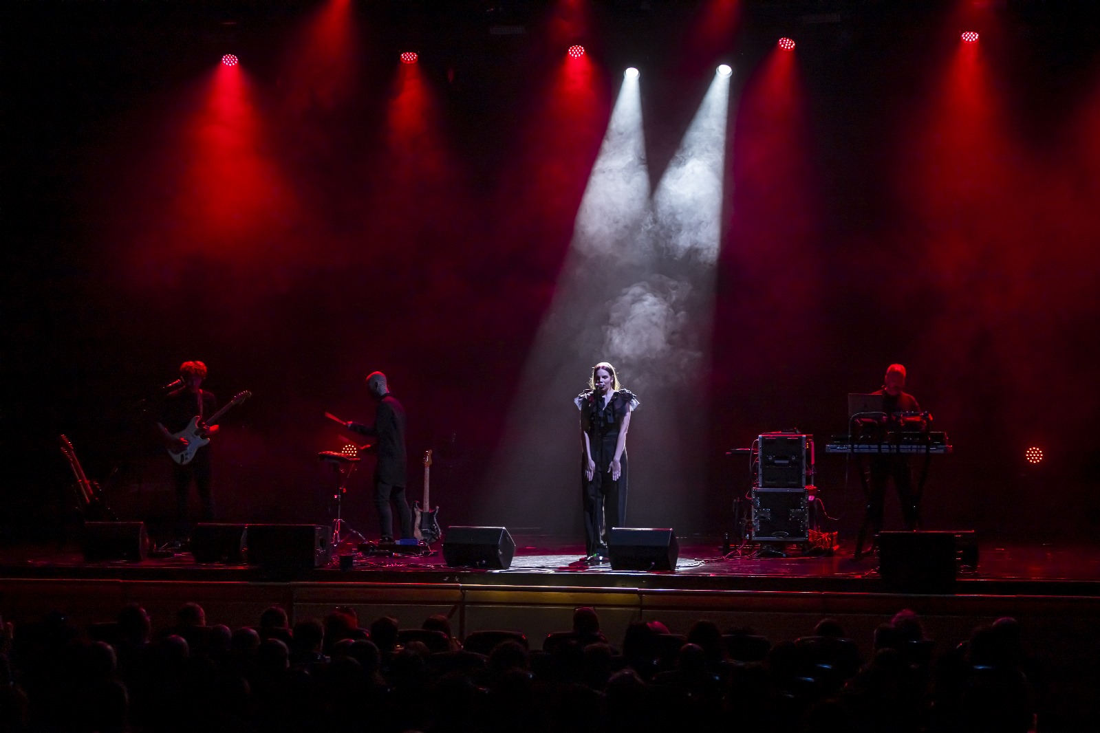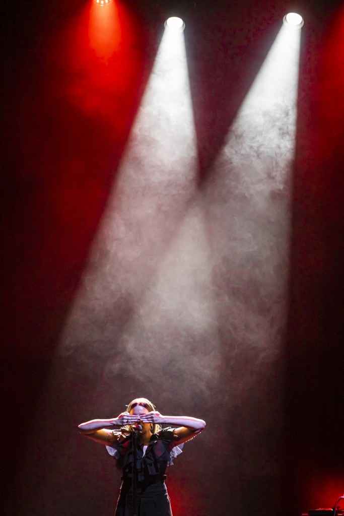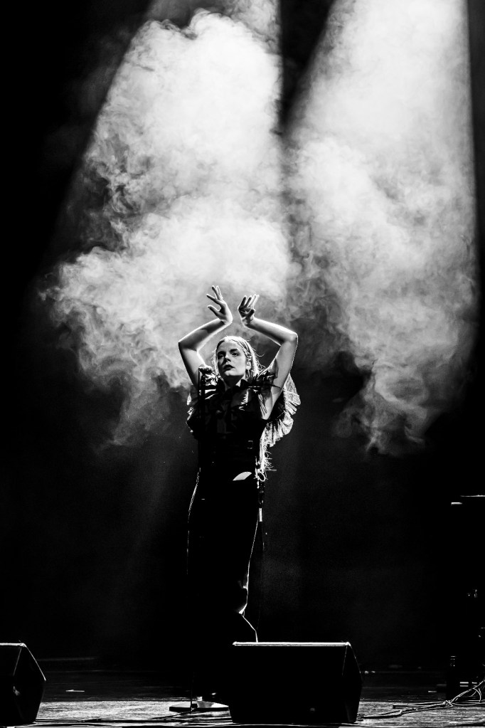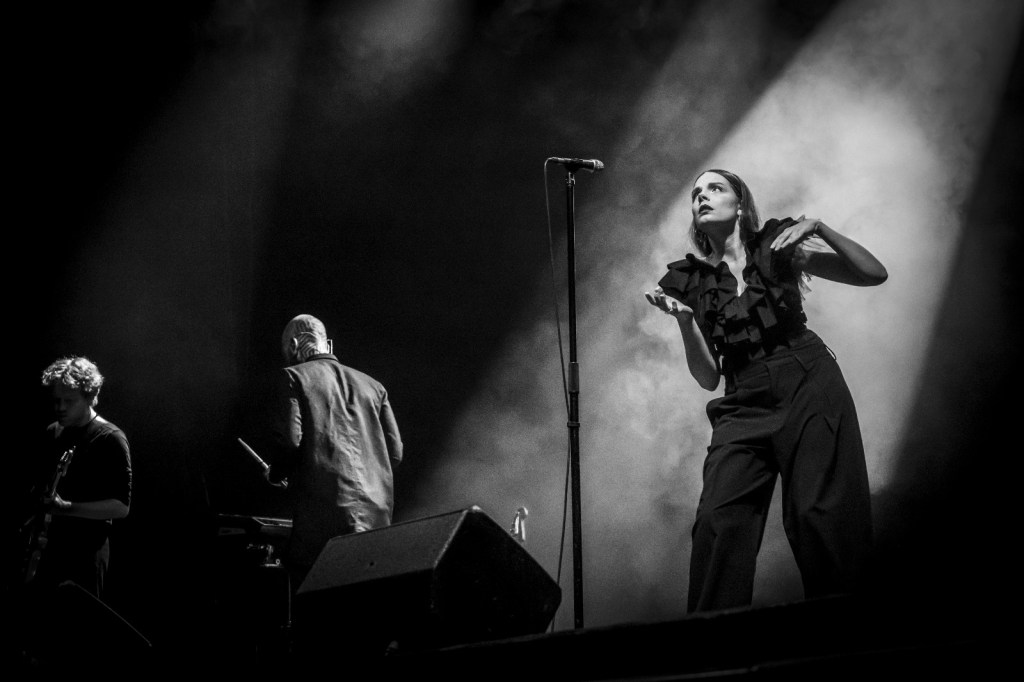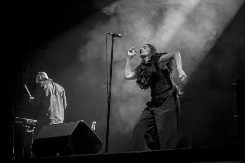 GGGOLDDD, FROM AMSTERDAM, NETHERLANDS, CAME TO EXTRAMURALHAS 2023 TO PLAY THE EXCEPTIONAL SONGS FROM “THIS SHAME SHOULD NOT BE MINE,” A COMPOSITIONAL MARVEL WHERE MILENA EVA ALLOWS HERSELF TO BE X-RAYED, REVEALING THE RAW CONFESSIONAL ASPECT OF HER LIFE STORY. IN THEIR LIVE PERFORMANCE, THE BAND SHOWCASED THEIR SIGNATURE AESTHETIC DESIGN, AND THEIR ELECTRONIC SONGS, GROUNDED IN ROCK-INFUSED STRUCTURES, SHONE IN THE IMMENSE DARKNESS OF THEIR SOUL. AT THE CENTER, LIKE A QUEEN WITH A REVITALIZED PURPOSE, MILENA EVA TOWERED, CAPTIVATING THE AUDIENCE’S EYES AND EARS WITH HER PENETRATING VOICE AND GRACEFUL BODY MOVEMENTS, DRAWING THEM IN LIKE A POWERFUL MAGNET. THE AUDIENCE AT TEATRO JOSÉ LÚCIO DA SILVA SUCCUMBED TO HER IRRESISTIBLY. PHOTOGRAPHER GIL ÁLVARO DE LEMOS TOOK SOME OF THOSE MOMENTS:
