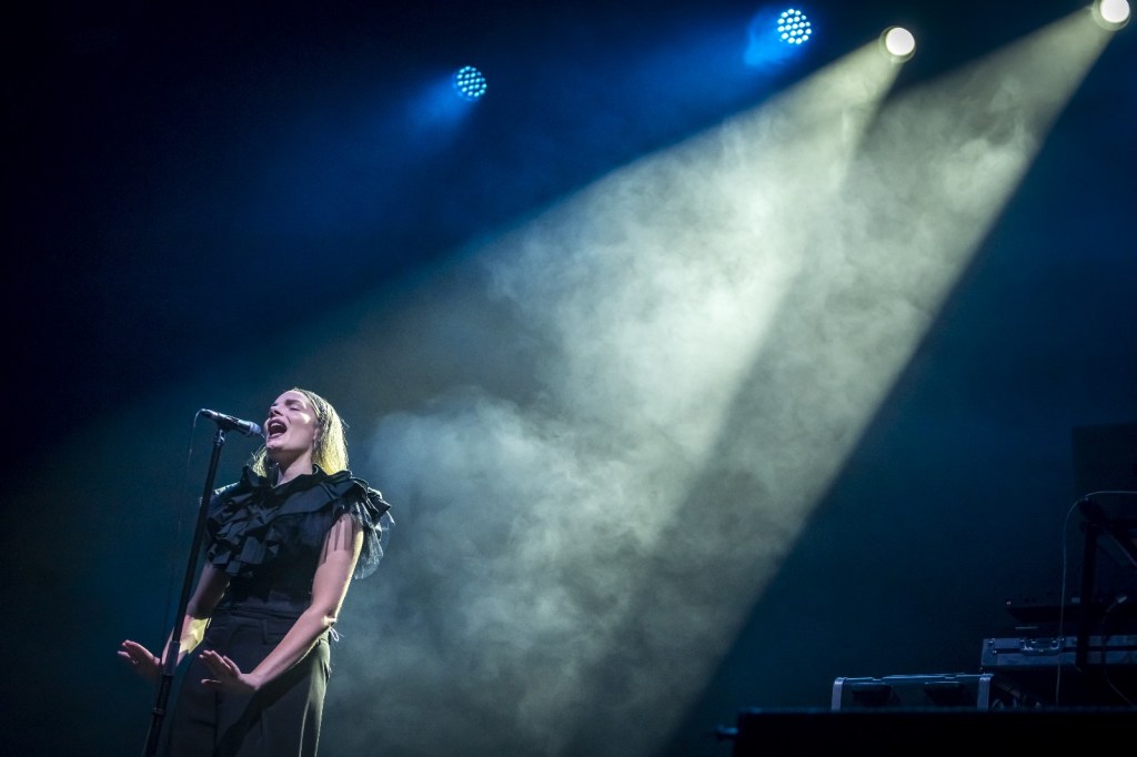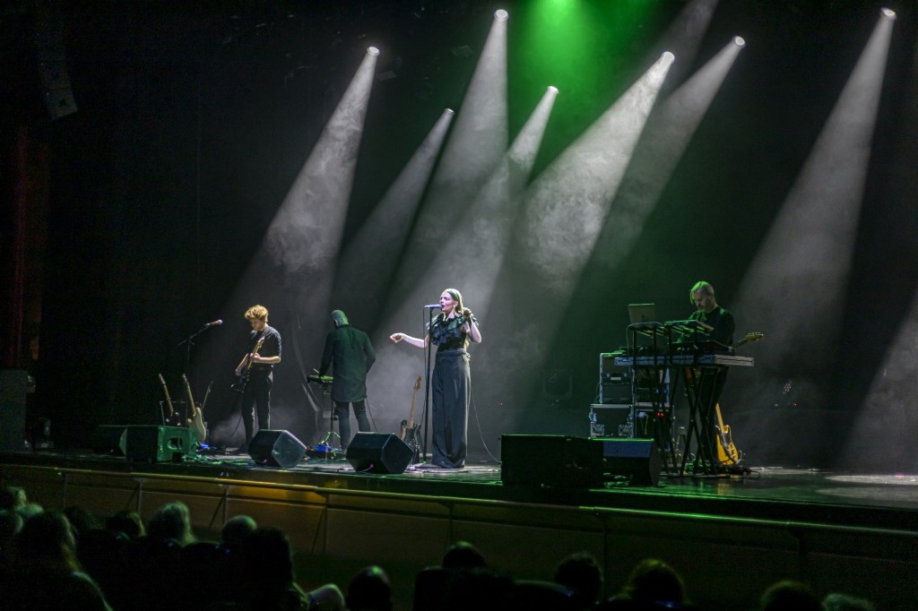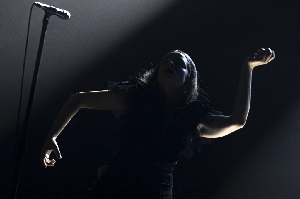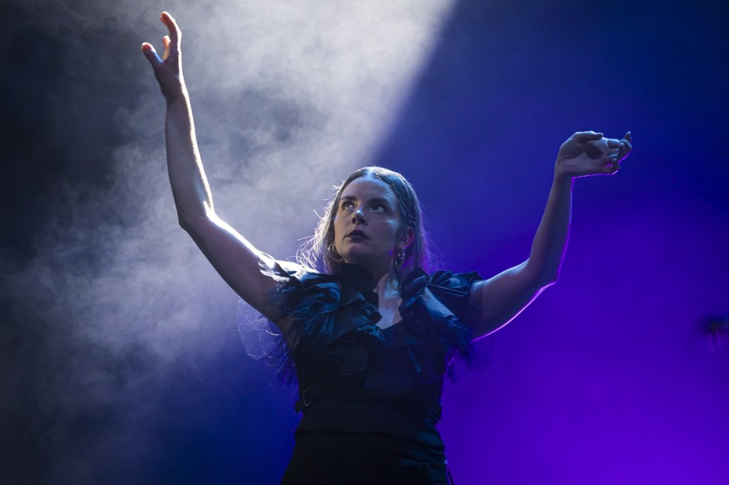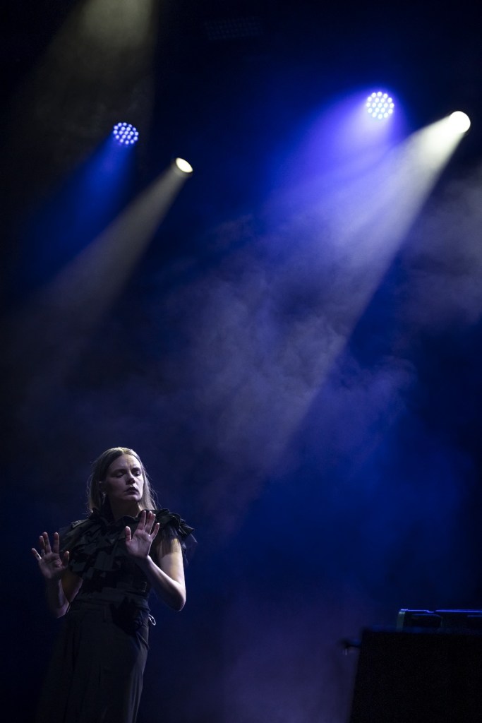 GGGOLDDD, FROM AMSTERDAM, NETHERLANDS, CAME TO EXTRAMURALHAS 2023 TO PLAY THE EXCEPTIONAL SONGS FROM “THIS SHAME SHOULD NOT BE MINE,” A COMPOSITIONAL MARVEL WHERE MILENA EVA ALLOWS HERSELF TO BE X-RAYED, REVEALING THE RAW CONFESSIONAL ASPECT OF HER LIFE STORY. IN THEIR LIVE PERFORMANCE, THE BAND SHOWCASED THEIR SIGNATURE AESTHETIC DESIGN, AND THEIR ELECTRONIC SONGS, GROUNDED IN ROCK-INFUSED STRUCTURES, SHONE IN THE IMMENSE DARKNESS OF THEIR SOUL. AT THE CENTER, LIKE A QUEEN WITH A REVITALIZED PURPOSE, MILENA EVA TOWERED, CAPTIVATING THE AUDIENCE’S EYES AND EARS WITH HER PENETRATING VOICE AND GRACEFUL BODY MOVEMENTS, DRAWING THEM IN LIKE A POWERFUL MAGNET. THE AUDIENCE AT TEATRO JOSÉ LÚCIO DA SILVA SUCCUMBED TO HER IRRESISTIBLY. PHOTOGRAPHER GIL ÁLVARO DE LEMOS TOOK SOME OF THOSE MOMENTS: