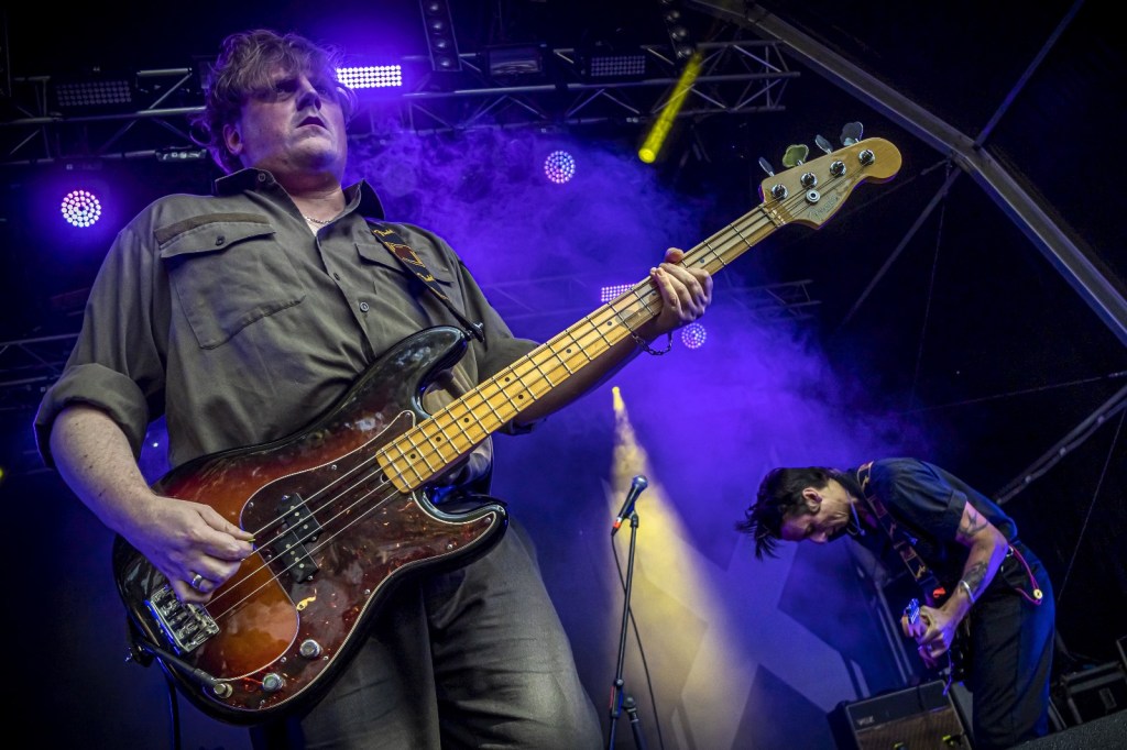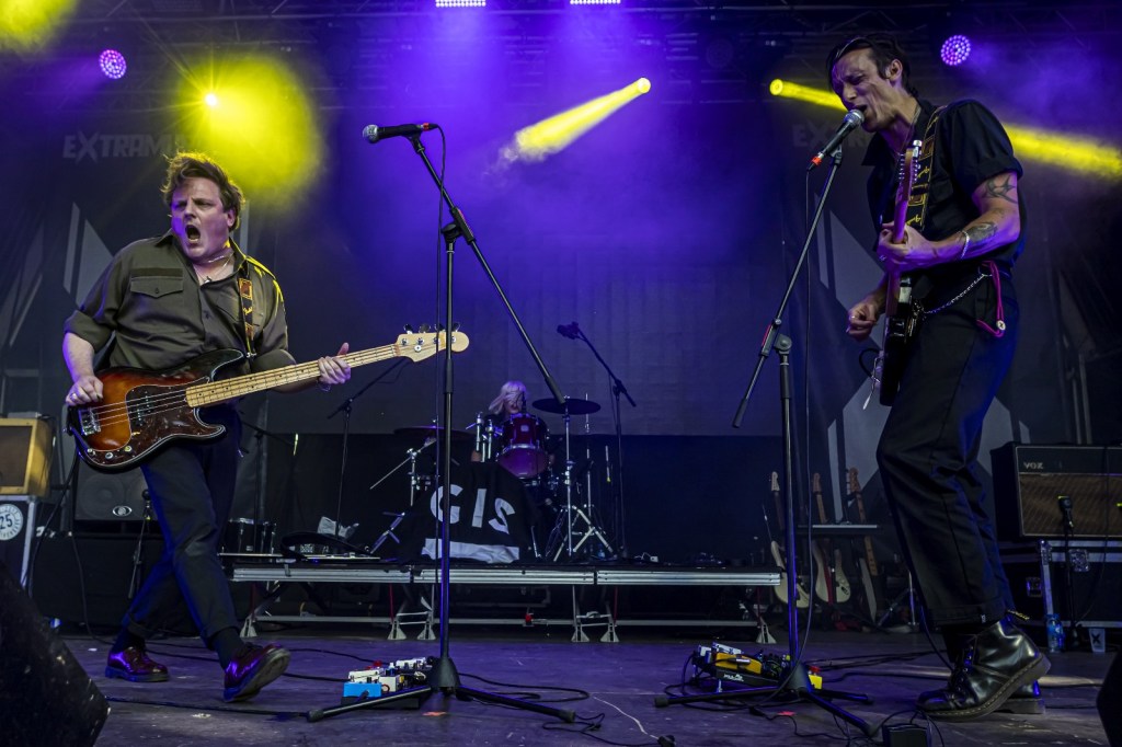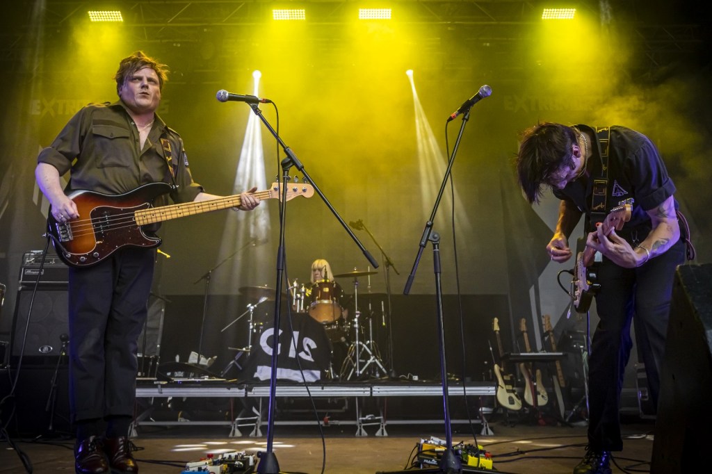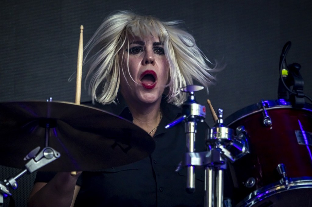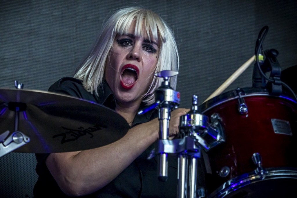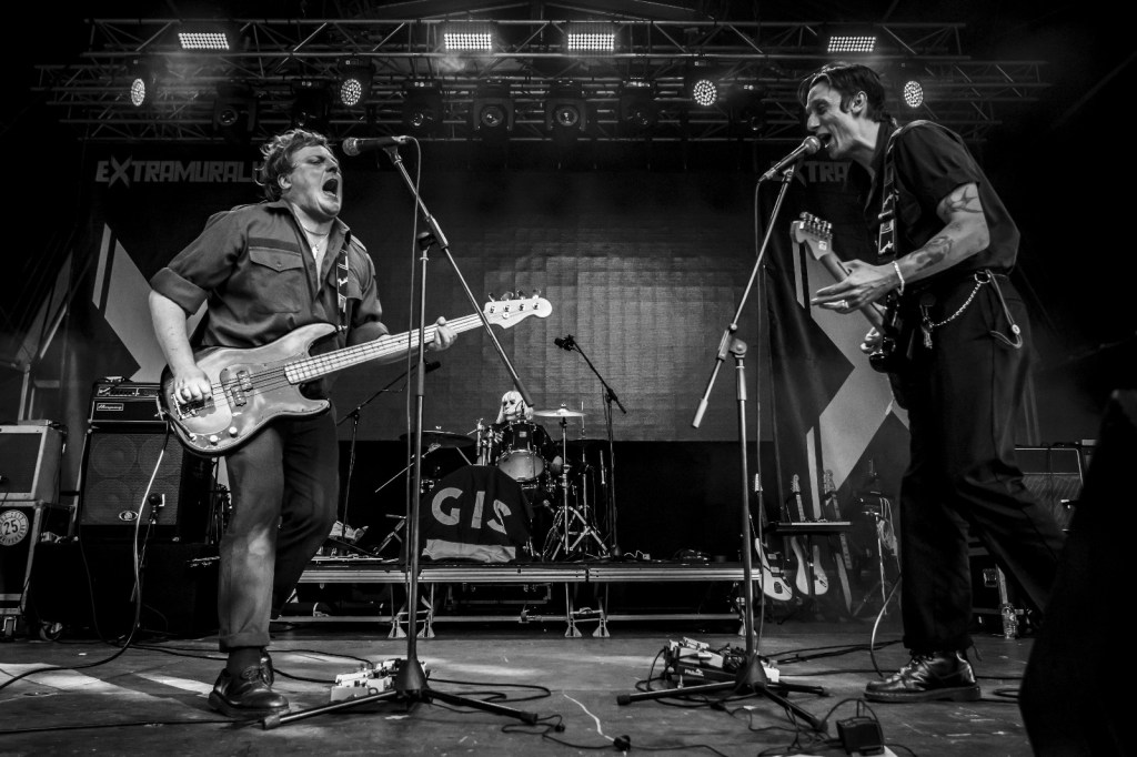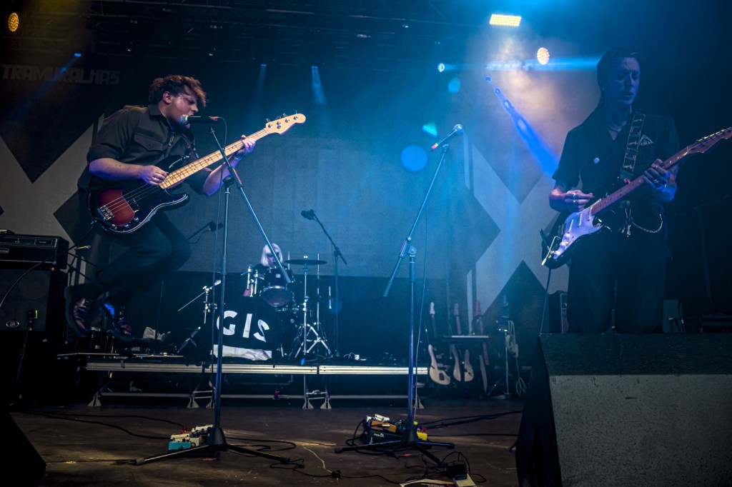 THE BRITISH BAND GIRLS IN SYNTHESIS TOOK ADVANTAGE OF THEIR LIVE DEBUT IN PORTUGAL TO STRONGLY SHOWCASE THEIR POWERFUL SOUND, A BLEND OF OVERWHELMING POST-PUNK, BUILT UPON THE MORE TRADITIONALIST LEGACY OF ASSERTIVE PUNK AND ROCK WITH IMPACTFUL SONIC OUTBURSTS. A FIERCE VOCAL DUEL, A BATTLE OF GUITAR AND BASS IN FULL SWING, MEDIATED BY A DEVILISH MECHANICAL DRUMMER OF ASTOUNDING PRECISION. THE RESULT: THE AUDIENCE THAT FILLED JARDIM LUÍS DE CAMÕES COMPLETELY SURRENDERED TO THE TALENTS OF THIS INCREDIBLE AND HARSHNESS BAND. PHOTOGRAPHER GIL ÁLVARO DE LEMOS TOOK THESE FANTASTIC IMAGES: