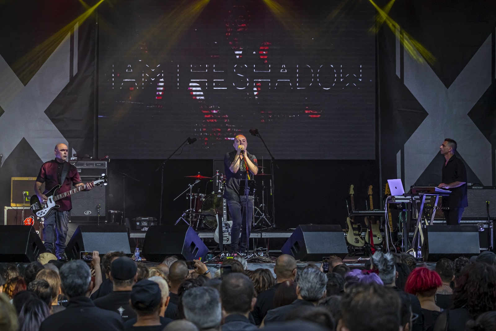 DARKWAVE POST-PUNK TRIO IAMTHESHADOW IS ONE OF PORTUGAL’S GEMS, AND THEIR GLOOMY ROMANTIC TRACKS, BASED ON SWINGING MONOCHROMATIC BASS, BEAUTIFUL SYNTH MELODIES, EFFICIENT BEATS, AND VELVET VOCALS, ARE WELL-KNOWN BEYOND OUR BORDERS. THEIR LIVE SHOW AT EXTRAMURALHAS 2023 HAS EARNED THEM HUNDREDS OF NEW FANS, A VERY WELL-DESERVED ‘PRIZE’ FOR A BAND WITH SO MANY MUSICAL TREASURES TO DISCOVER! PHOTOGRAPHER GIL ÁLVARO DE LEMOS IS THE AUTHOR OF THESE IMAGES: