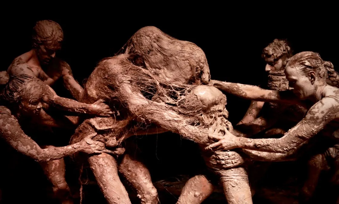 A DIALOGUE BETWEEN THE UNIVERSES OF WIM VANDEKEYBUS, OLIVIER DE SAGAZAN, AND CHARO CALVO, MATERIALIZED IN AN OUTSTANDING PERFORMATIVE SHOW INCLUDING DANCE, MUSIC, VIDEO, TRANSFIGURATION, AND LIVING SCULPTURES!